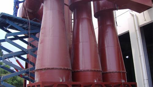 CLK擴散式旋風除塵器,適用于捕集干燥的非纖維性的顆粒狀粉塵,主要特點是筒身呈圓錐形,因而減少了含塵氣體自筒身中心短路到出口去的可能性,并裝有圓錐形的反射屏,防止兩次氣流將已經(jīng)分離下來的粉塵重新卷起,被上升氣流帶出,因而提高了除塵效率.