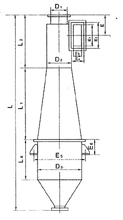 CLK擴散式旋風除塵器,適用于捕集干燥的非纖維性的顆粒狀粉塵,主要特點是筒身呈圓錐形,因而減少了含塵氣體自筒身中心短路到出口去的可能性,并裝有圓錐形的反射屏,防止兩次氣流將已經(jīng)分離下來的粉塵重新卷起,被上升氣流帶出,因而提高了除塵效率。