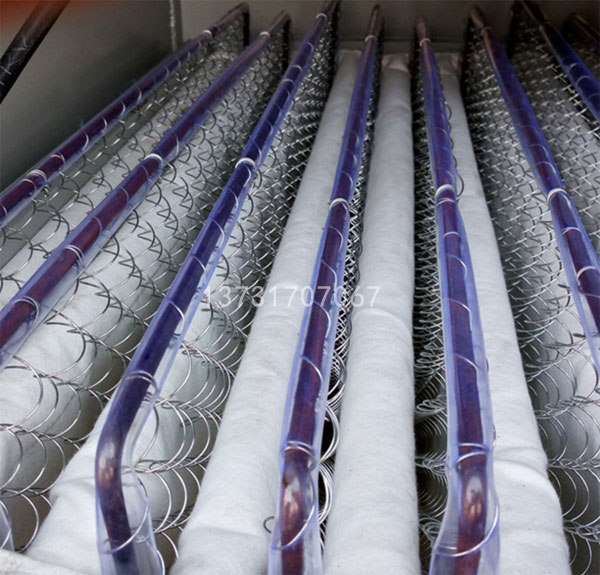 除塵骨架采用鋼絲框架和彈簧絲,彈簧絲具有很好的伸縮性,振動電機(jī)在帶動濾袋振動時(shí),彈簧絲有助于濾袋表面的灰塵抖落。
