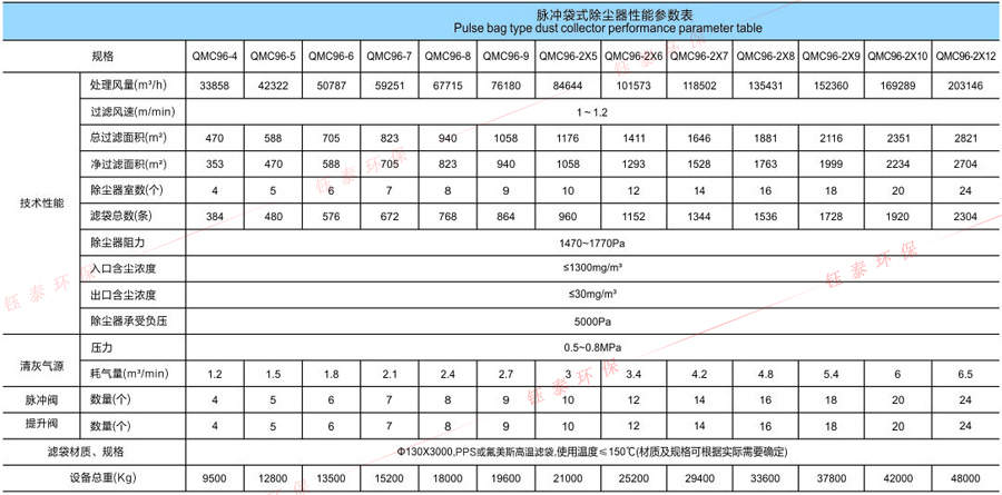 除塵清灰工作過程為:以一個袋為例,含塵氣體由進(jìn)口處直接進(jìn)入氣箱的袋室;由于有負(fù)壓風(fēng)機(jī)的引力驅(qū)動作用,含塵氣體由外及里,自下而上,克服阻力,穿越濾袋到達(dá)上部箱體;粉塵就會被阻擋在濾器組件之外,小的顆粒被吸附在濾芯的表面,大的顆粒直接掉到下面的灰斗中;經(jīng)過過濾后的含有微塵的氣體在脈沖提升閥處匯集,之后從出風(fēng)口排出,此時便是干凈的氣體。過濾狀態(tài)就是對含塵氣體進(jìn)行除塵。當(dāng)過濾工作達(dá)到一定時間(或阻力達(dá)到預(yù)先設(shè)定值),清灰過程開始。其工作過程為:控制器發(fā)出信號,使脈沖提升閥關(guān)閉,阻斷排氣;壓縮空氣脈沖閥開啟,以大于0.5MPa的壓縮空氣經(jīng)脈沖閥噴入凈氣室;并迅速膨脹入濾袋內(nèi),并產(chǎn)生振動作用,清除濾袋外側(cè)表面上的粉塵,粉塵掉落到灰斗。這個動作完成后(大約6~15s),壓縮空氣脈沖閥關(guān)閉,提升閥重新打開,該箱室的濾袋重新回到過濾狀態(tài)。