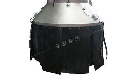 溜筒出口處的吸塵罩為多層結(jié)構(gòu),內(nèi)層為由皮帶膠組成的耐磨性能好、有一定相對(duì)硬度且具柔性的圍裙。皮帶膠圍裙主要用于緩解高速物料帶來的沖擊,緩沖高速氣流帶來的粉塵急速擴(kuò)散。吸塵罩的皮帶膠圍裙也起支撐作用,可以避免由于負(fù)壓作用,外層帆布裙被吸扁,碰到料位檢測(cè)裝置導(dǎo)致誤報(bào)信號(hào)或者在溜筒出料口干擾物料流動(dòng)。吸塵罩外層為雙重帆布圍裙,帆布裙的內(nèi)層長度需比皮帶膠圍裙大,需完全罩住皮帶膠圍裙。帆布裙外層比內(nèi)層略大,需覆蓋住溜筒出口處的物料。雙重結(jié)構(gòu)主要用于控制粉塵外揚(yáng)及外部風(fēng)力作用將粉塵揚(yáng)起擴(kuò)散。整個(gè)吸塵罩在物料面和溜筒出口間構(gòu)成一個(gè)相對(duì)密閉的空間,防止粉塵外溢。